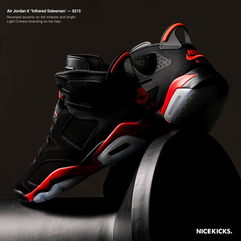 Air Jordan 6 Retro Infrared Salesman Mens Lifestyle Shoe - Black/Light Crimson AIR JORDAN 6 RETRO INFRARED SALESMAN
