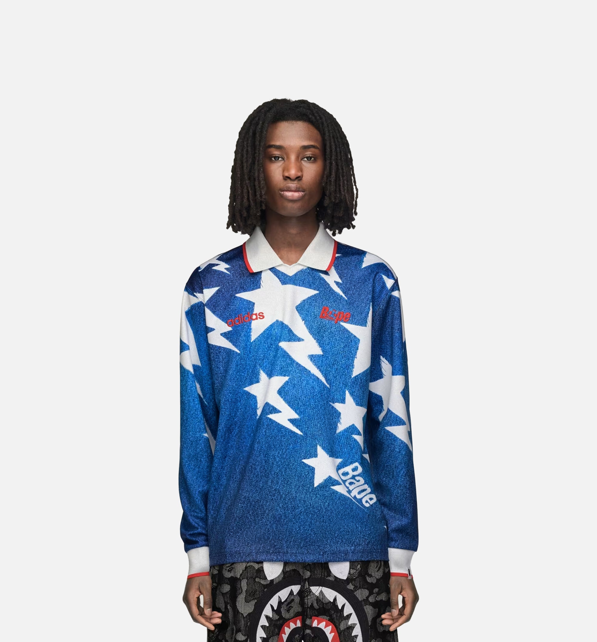 Whether you're hitting the streets or lounging with friends, the LSL Star Jersey BAPE offers statement style without compromising on comfort. The loose fit allows freedom of movement, while the knit construction offers a soft touch against the skin, making it a staple for everyday wear. A classic collar completes the top, adding a touch of sophistication to its laid-back style. Pair with your favourite denim or joggers for a look that's both empowering and authentic. Embrace the Originals spirit and make a statement with every wear.