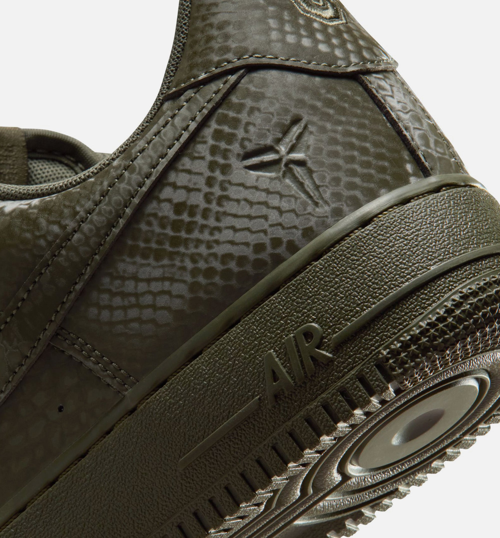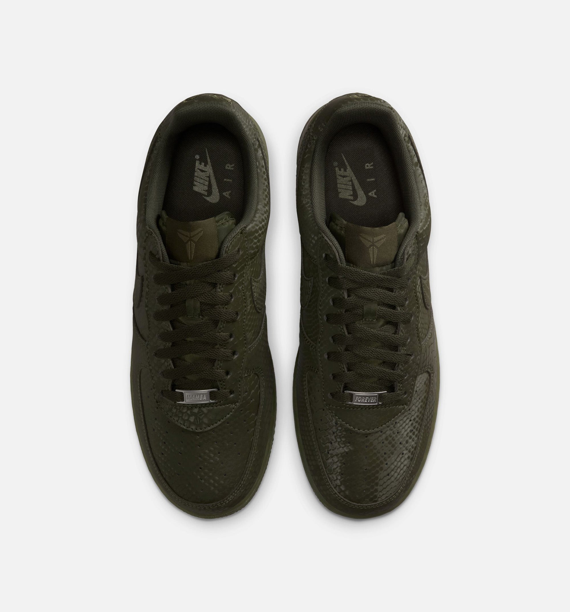 This special-edition AF1 is infused with Mamba DNA, like the allover snakeskin print—putting a distinct spin on an all-time classic. The embroidered "8" and "24" on the heel nod to Kobe's retired jersey numbers, while Sheath logos on the tongue and outer heel add signature branding. Complete with special "Mamba Forever" lace dubraes, this Kobe AF1 continues the legacy.- Shown: CARGO KHAKI/CARGO KHAKI