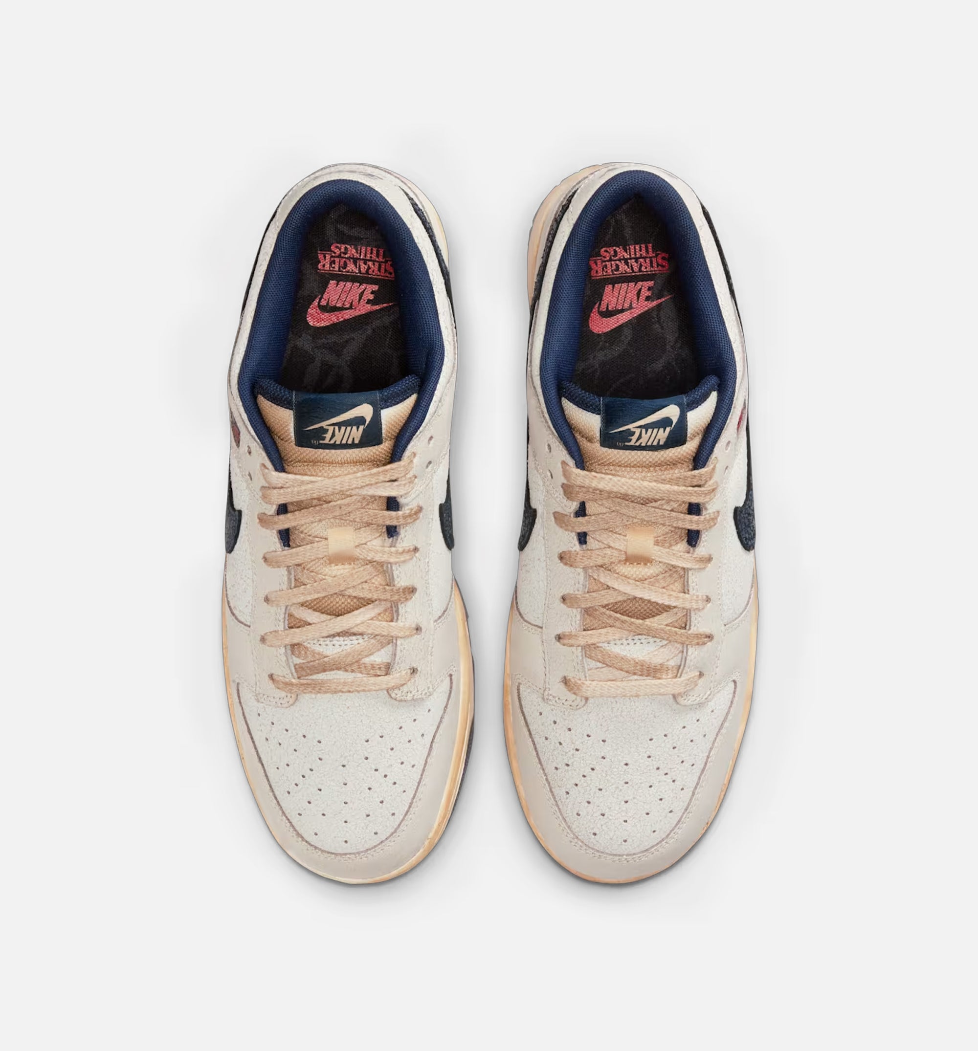 We are not sure how to explain this Dunk Low. It's like it has been stuck, somewhere, for 38 years. The leather looks worn, crackled. The laces and the midsole have an aged colouring to them. That's to be expected with a shoe that was made in 1987. But the logos. We can't make sense of those. They are … upside down.- Shown: PHANTOM/MIDNIGHT NAVY