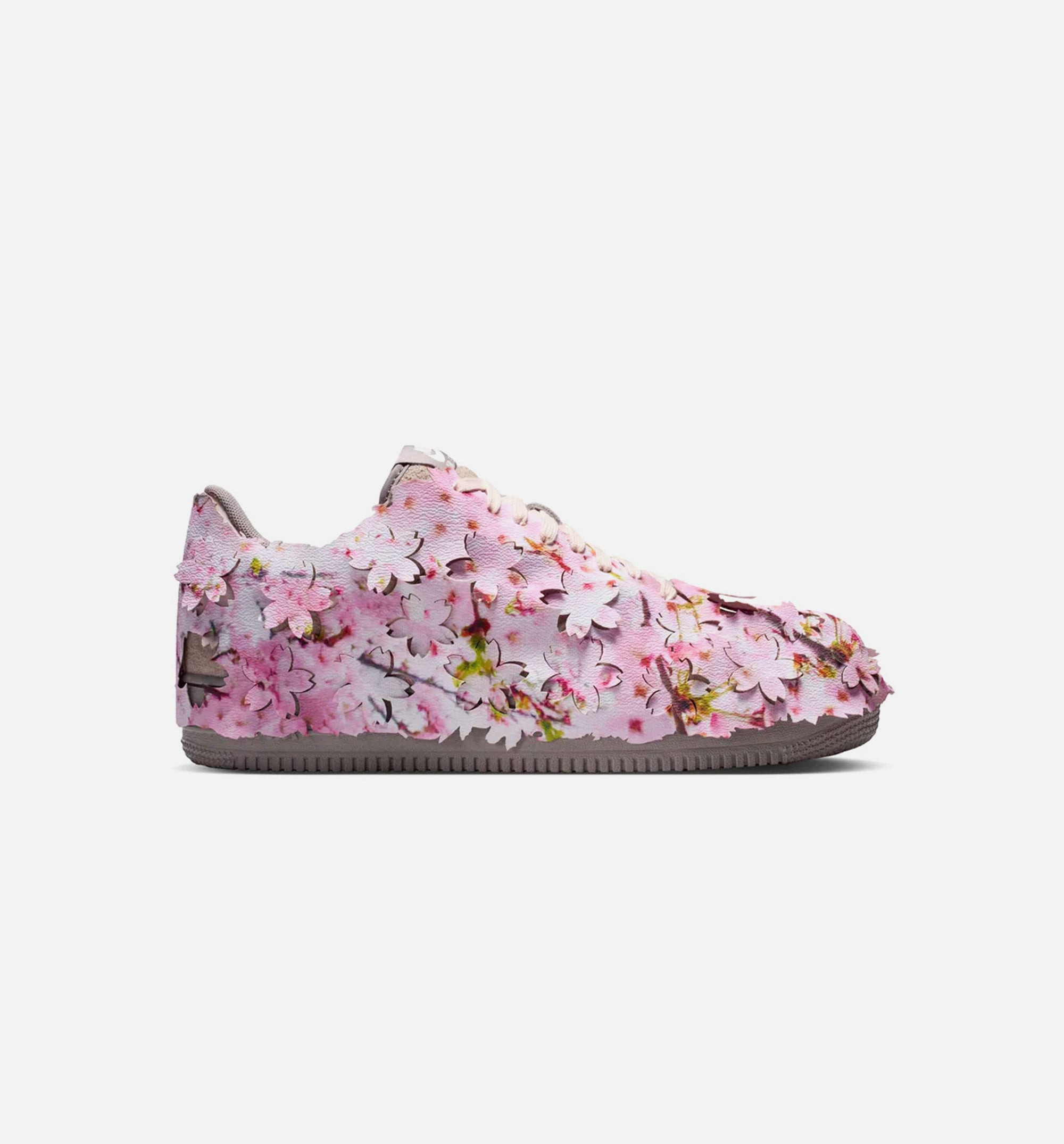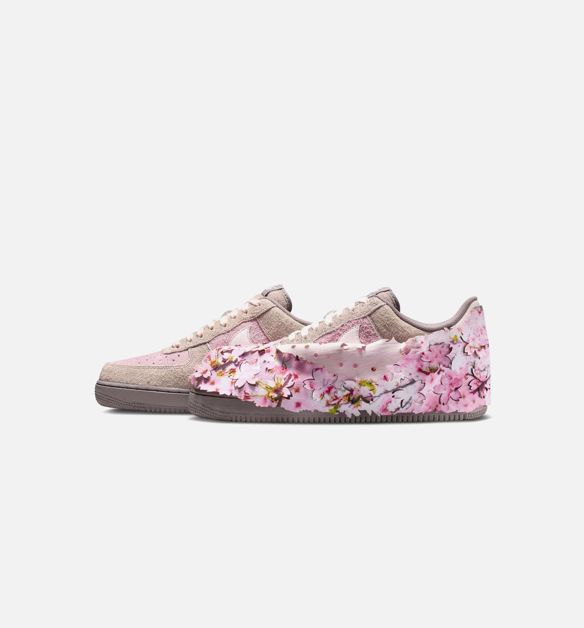 Nike created this Air Force 1 '07 to celebrate the colours and changes that come when spring blooms. An overlay shroud features the beautiful colours and shapes of cherry blossoms. Peaking through the shroud is a suede and synthetic leather upper that continues the look with Light Soft Pink and earth tones. What's more quintessentially spring than trees full of flowers? Pretty petals on your sneakers.